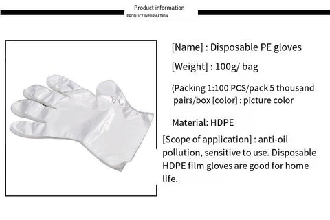 Disposable Thickened Environment-Friendly PE Plastic Gloves Kitchen Dining Cleaning Beauty Appliances 100 / Package