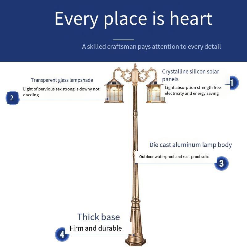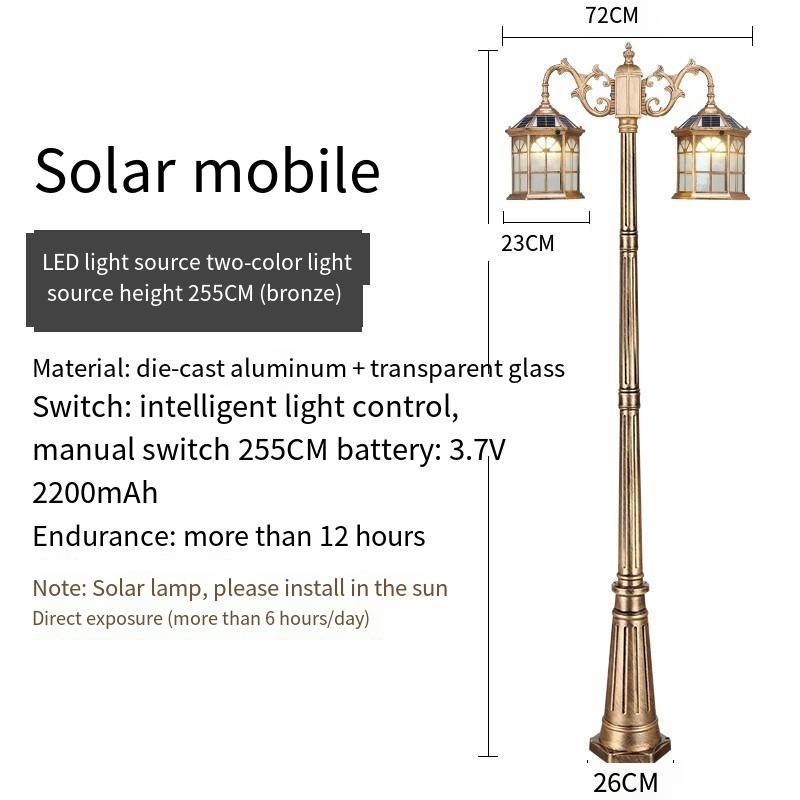 Courtyard Lamp Outdoor Solar Lamp LED Garden Villa Waterproof European Street Lamp Landscape Outdoor Retro High Pole Street Lamp 2.25m Bronze