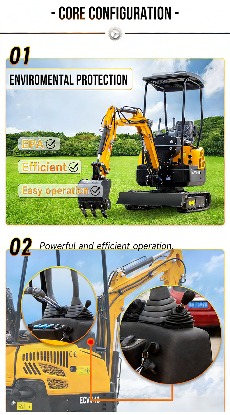 ECVV Mini Excavator ECVV-13 CE/EPA Certified Multifunctional High Efficiency Digger Machinery