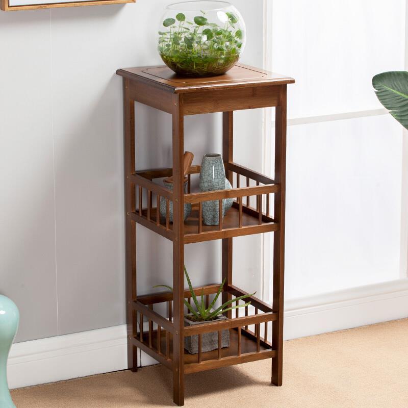 Flower Rack Solid Wood Multi-layer Floor Type Bonsai Flower Pot Rack Balcony Living Room Flower Table Fish Tank Two-layer Brown Fence