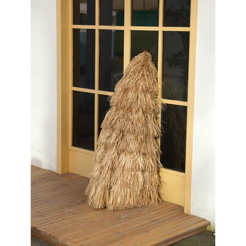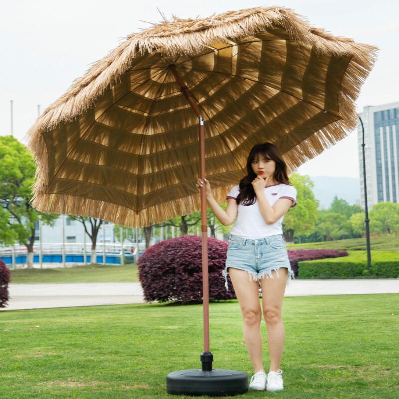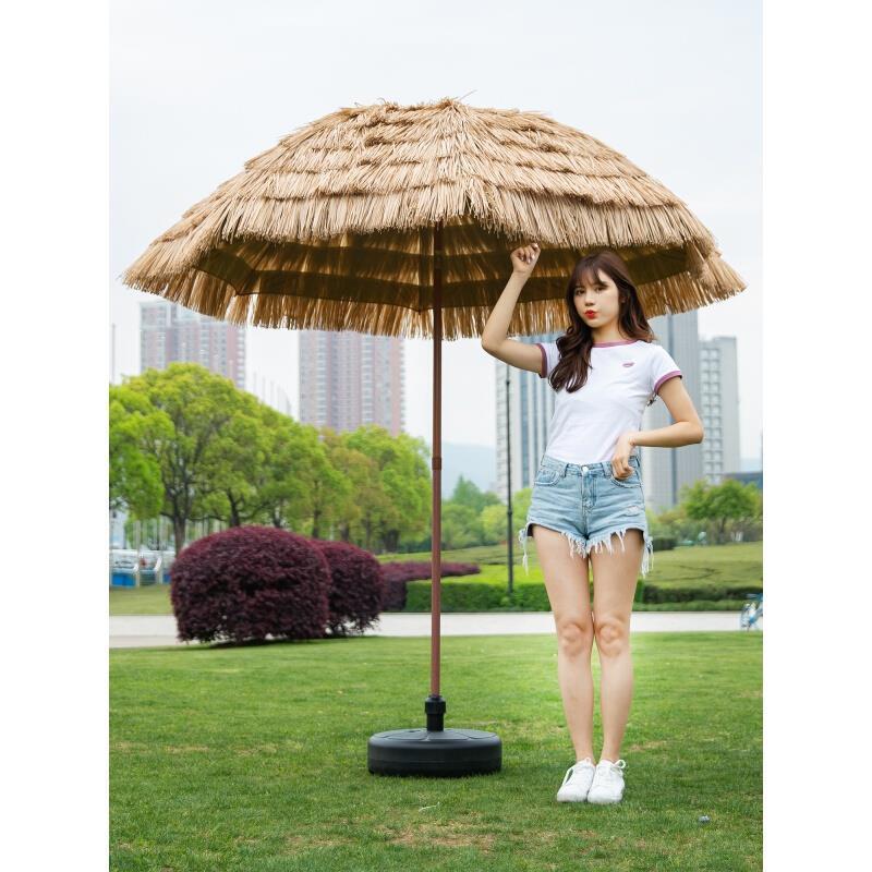 Outdoor Umbrella Big Folding Sun Umbrella Beach Umbrella Scenic Area Umbrella 2.4 M Straw Umbrella + Iron Frame Base