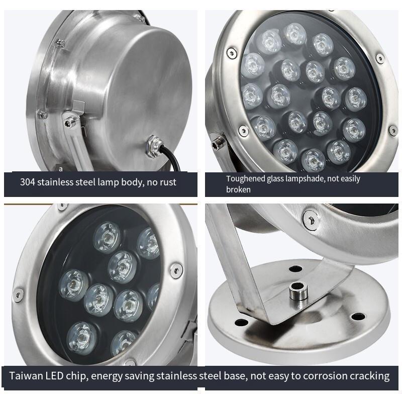 LED Underwater Light Underwater Light Stainless Steel Pool Light Fish Pool Light Waterscape Light Waterproof Spotlight Fountain Light 3w Colorful