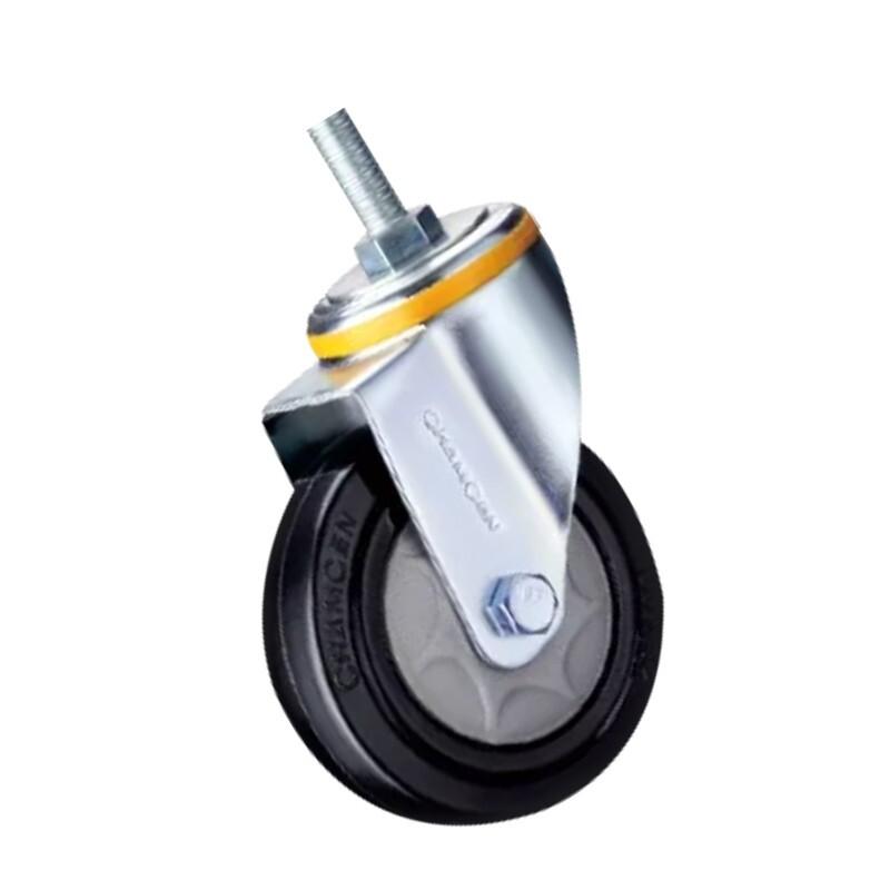 B5-4 Inch Lead Screw Active Black High Elastic Natural Rubber (ER) Caster Medium Single Ball Bearing Universal Wheel 4 Sets / Sets