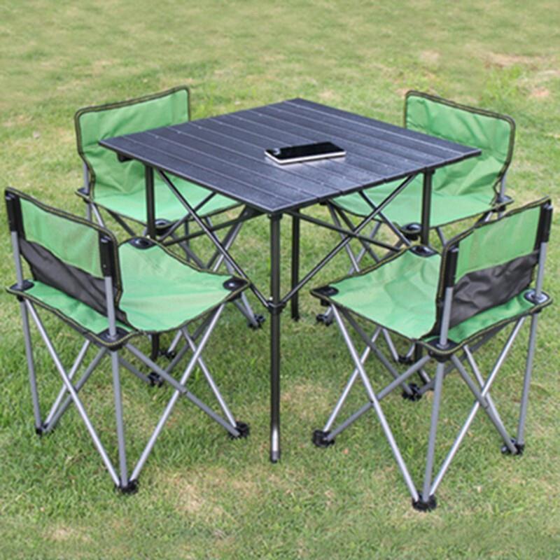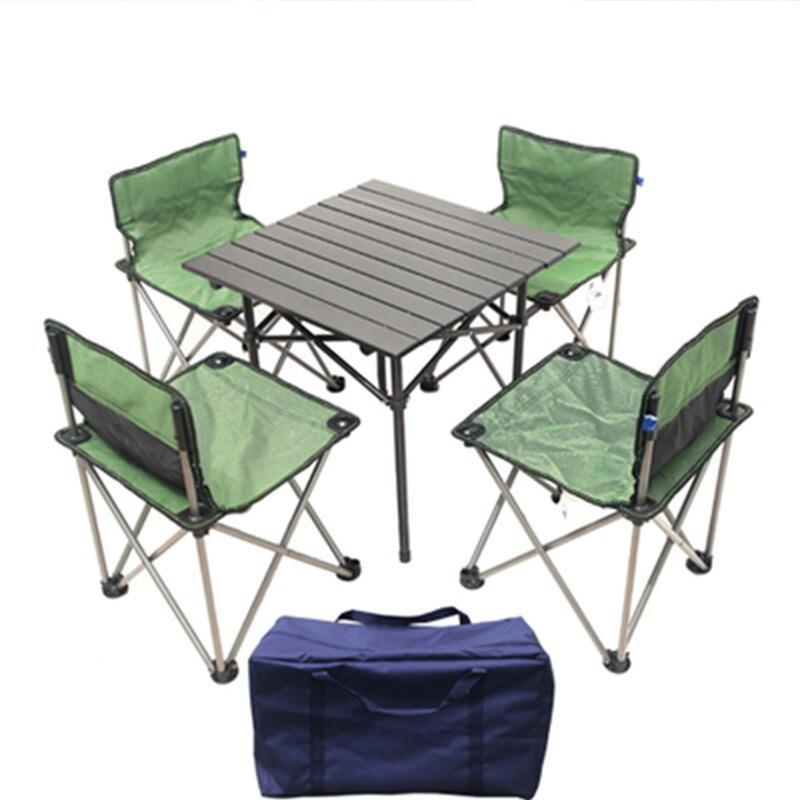 Outdoor Folding Table And Chair Camping Super Portable Table And Chair 1 Long Aluminum Table + 6 Green Cloth Chair