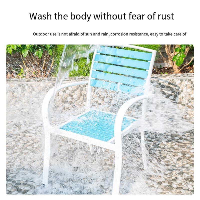 Outdoor Plastic Wood Balcony Table And Chair Combination Outdoor Courtyard Leisure Table And Chair Rope Back Chair (straight) * 4 + Plastic Wood