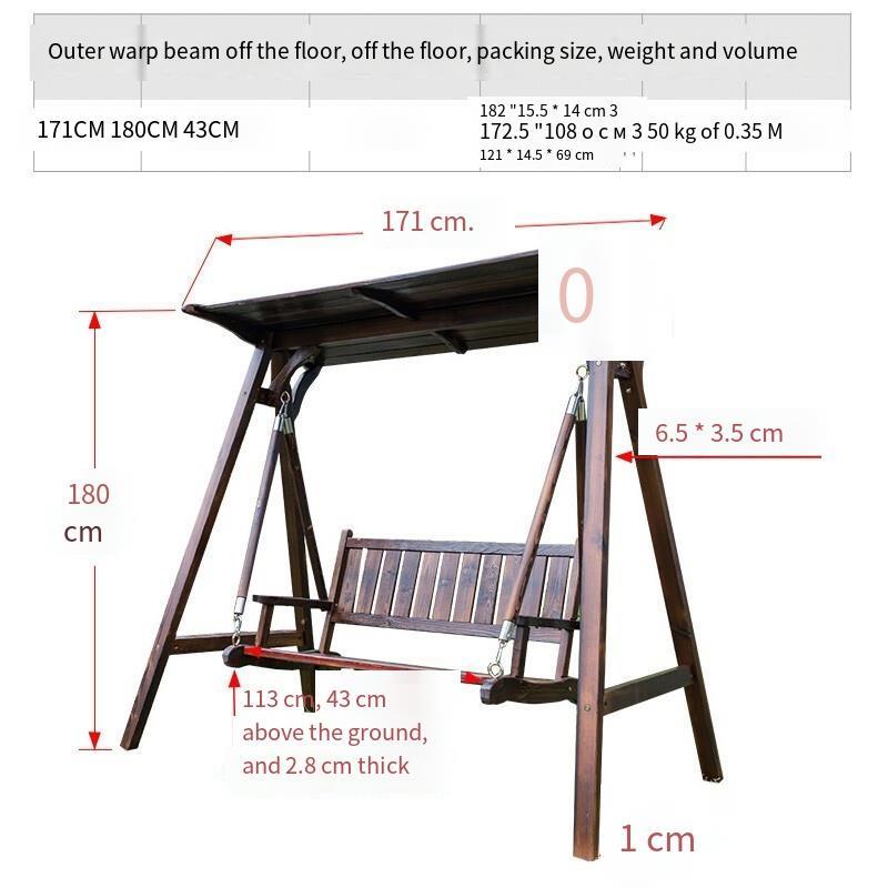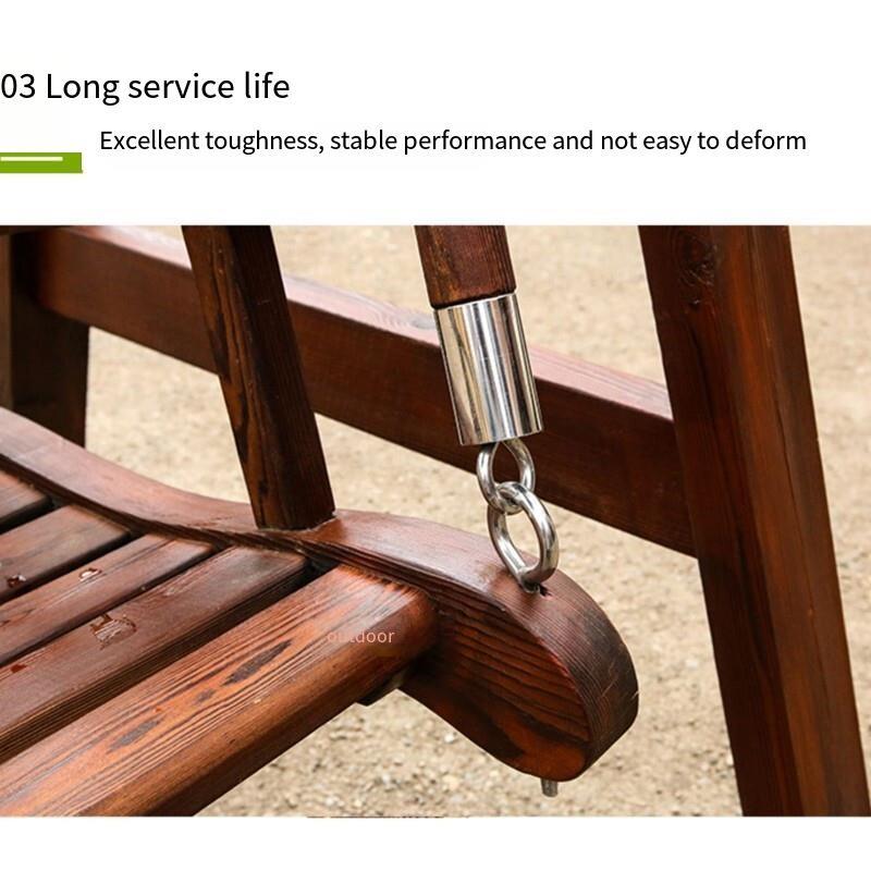 Outdoor Solid Wood Rocking Chair Carbonized Wood Swing Hanging Chair Garden Balcony Leisure Double Table Anticorrosive Wood Deep Carbonized Ribbon Ceiling
