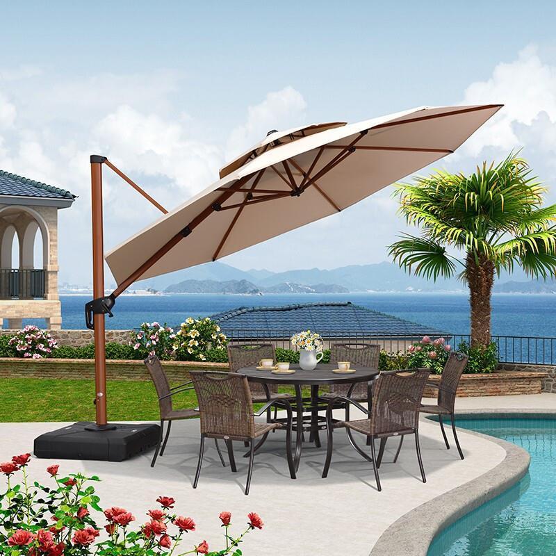 Outdoor Sunshade Courtyard Umbrella Garden Wood Grain Large Terrace Villa Roman Umbrella Leisure Umbrella 3.0m Square [with 130kg Water Tank Base]