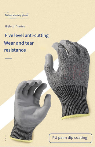 PU Palm Coated Anti Knife Cutting Labor Protection Gloves 13 Needle Grade 3 Tear Resistant Puncture Resistant Wear Resistant And Breathable Site Work Protective Gloves 1 Pair / One Size