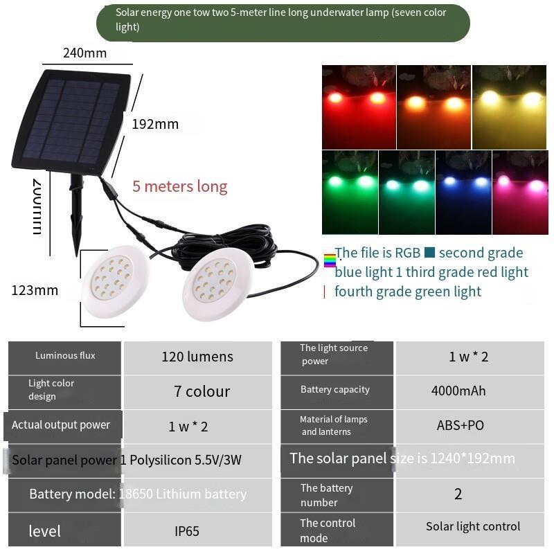 Solar Energy Underwater Light LED Fish Pond Spotlight Landscape Fountain Light Fish Tank Light Swimming Pool Light Garden Colorful Underwater Lamp