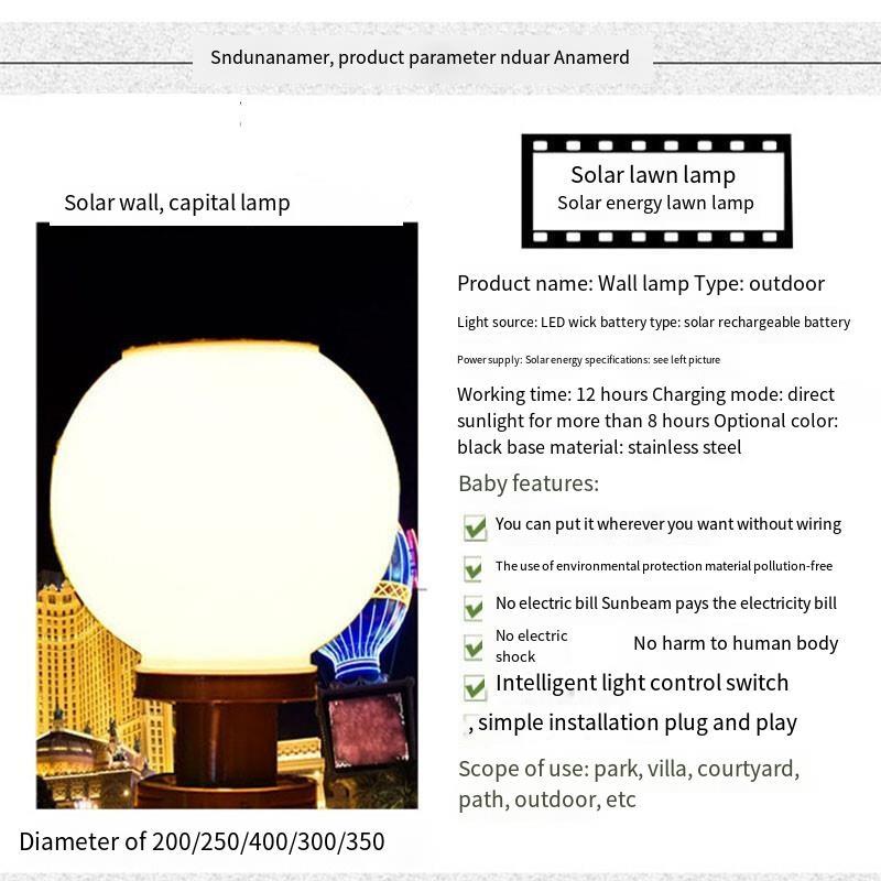 Solar Lamp Ball Lamp Fence Column Head Lamp Outdoor Waterproof Landscape Door Column Lamp New Rural Courtyard Street Lamp Super Bright White Light