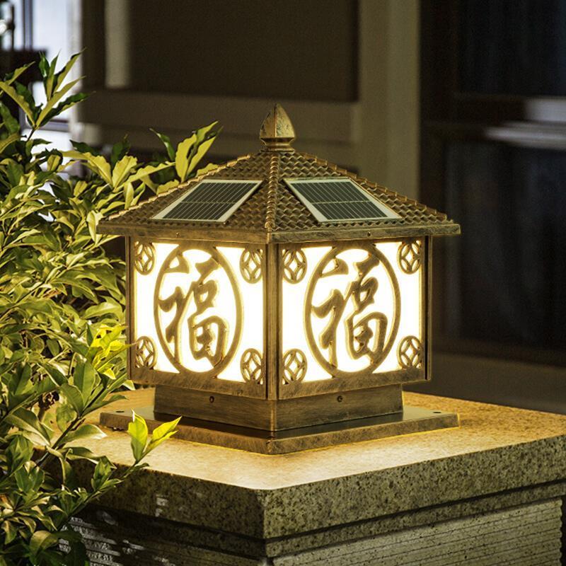 Solar Lamp Courtyard Lamp Column Head Lamp Outdoor Waterproof Villa Wall Head Yard Fence Gate Column Lamp Fuzi Column Lamp Ancient Copper Solar Energy