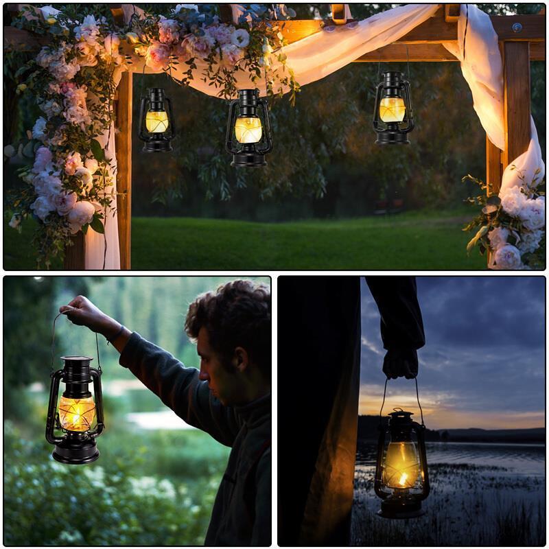 Solar Lamp Household Horse Lamp Retro Candle Portable Lamp Camping LED Chandelier Outdoor Camp Lamp Villa Waterproof Courtyard Lamp Black