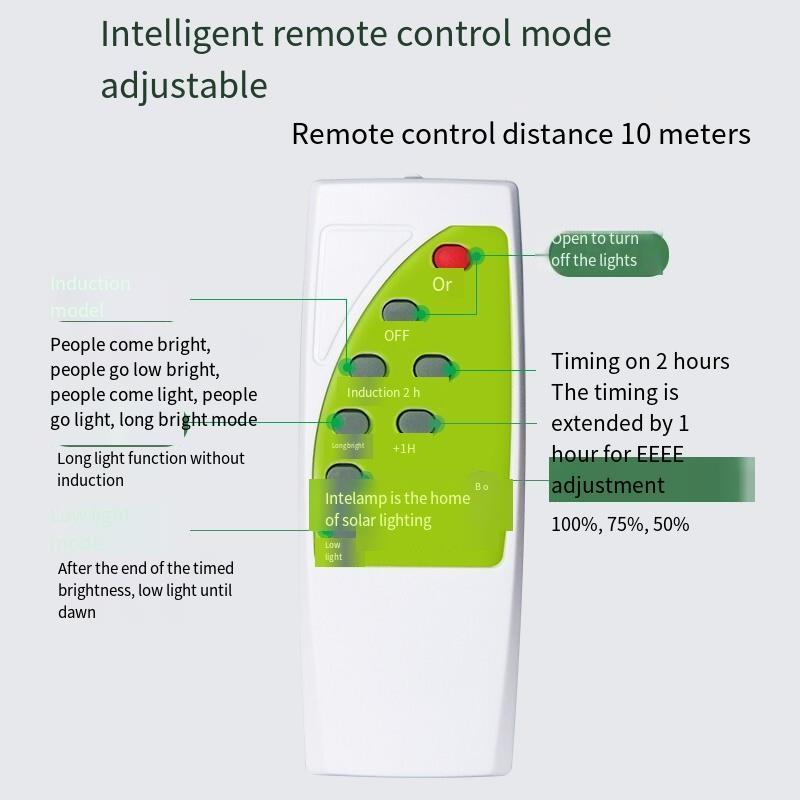 Remote control function: switch lights, adjust timing, adjust brightness, set sensor/long light mode