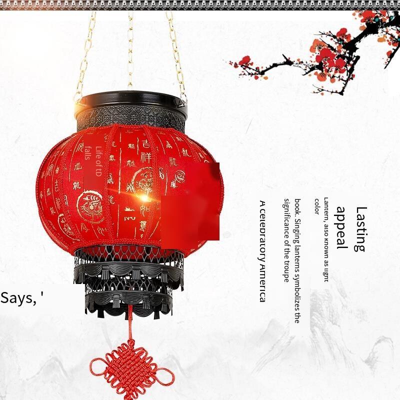 Solar Lantern Solar Lantern Nostalgic Chinese Antique Red Lantern Courtyard Chinese Style LED Lantern Outdoor Retro Diameter 500mm