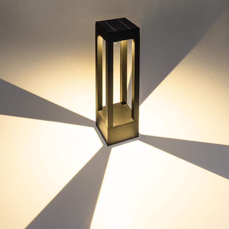 Solar Lawn Lamp Outdoor LED Garden Lamp Simple Modern Garden Landscape Lamp Outdoor Waterproof Courtyard Lamp 300 High Sand Black + Warm Light