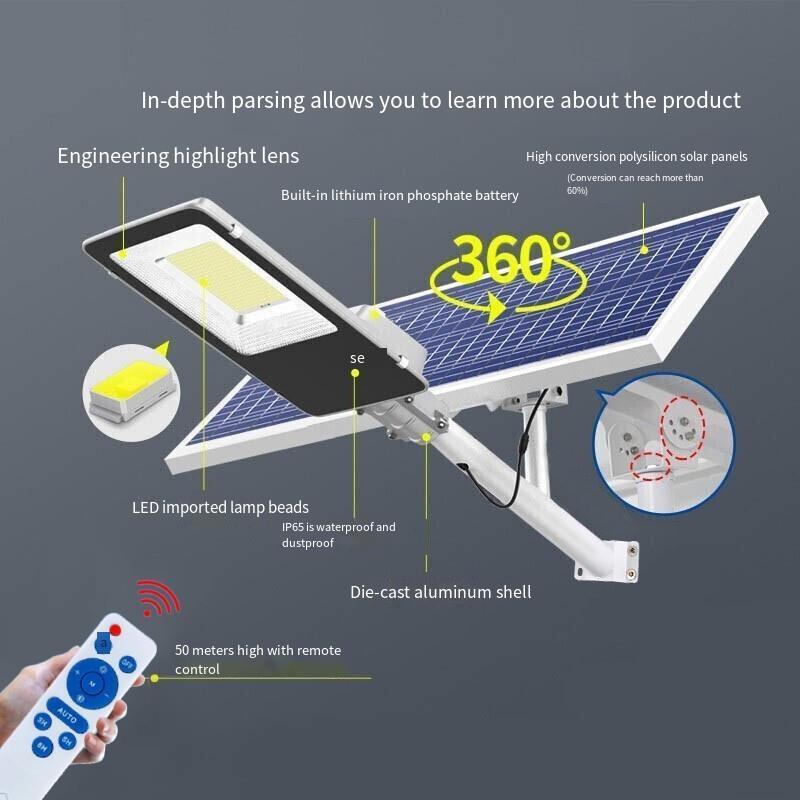 Solar Outdoor 100WStreet Lamp Household Outdoor Waterproof Courtyard Lamp High Power Bright LED Projection Lamp Road Construction Site High Pole Lamp