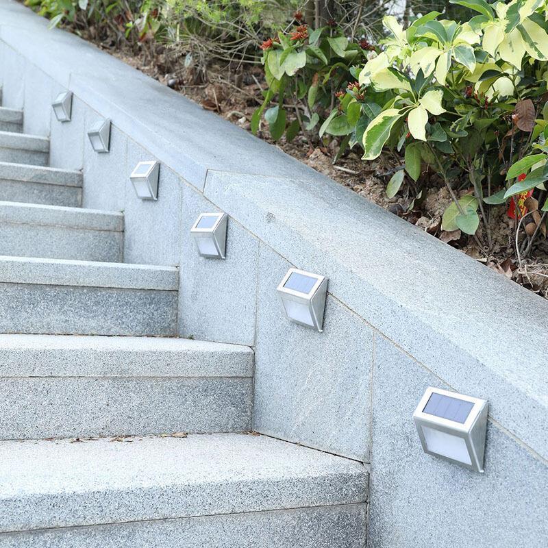 Solar Outdoor Courtyard Lamp Stair Fence Wall Lamp Waterproof LED Platform Ladder Lamp Household Garden Villa Landscape Guide Lamp 4 Sets White Light