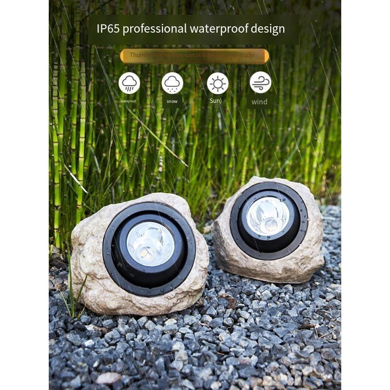 Solar Outdoor Lamp Courtyard Garden Layout Stone Small Decoration Lawn Landscape Waterproof Spotlight Simulation Basalt - 1 Set [white Light + Warm Light]