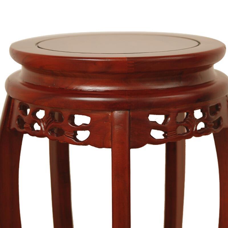Solid Wood Flower Rack Household Living Room Green Luo Chlorophytum Potted Wooden Ming And Qing Antique Elm Round Carved Decorative Rack Company Office Bedroom Study 30 Diameter 45 Cm High Chestnut Red