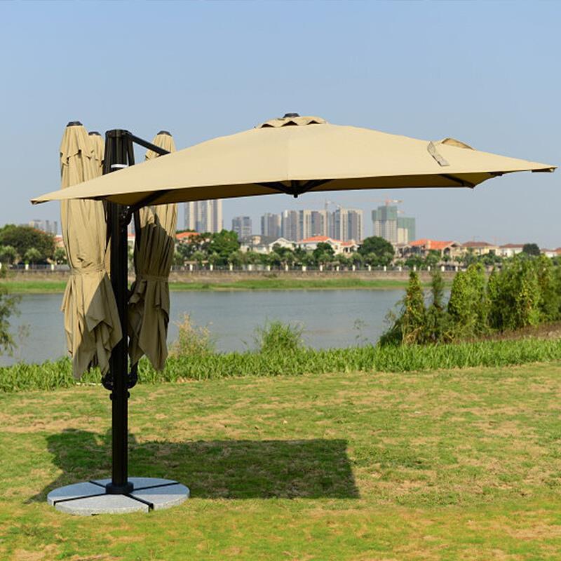 Hand crank clockwise to open the umbrella, counterclockwise to close the umbrella